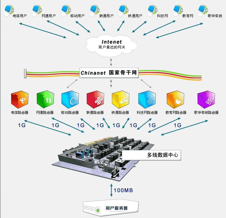 二、 智能判断客户端加速:智能IP判断客户端,让浏览者自动选择路由级别最近的运营商带宽,全面提高上网者访问服务器端速度。